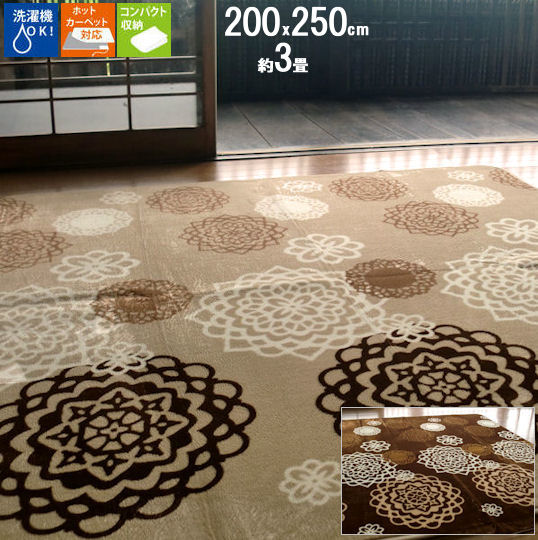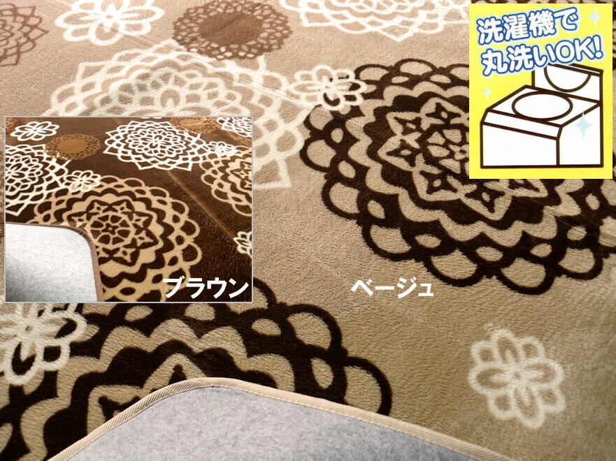 2色展開 ラグ 洗える 洗濯機で丸洗い 洗える 200×250 約 3畳 自然植物デザインフラワーリーフラグ ラグ フラワー リーフこたつ敷き フランネルラグ マイクロファイバー折り畳み ホットカーペットカバー ベビー ボアラグ ベージュ ブラウン 短毛