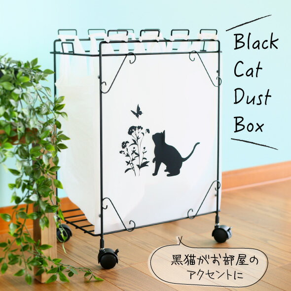 ゴミ箱 ごみ箱 おしゃれ 分別 ダストワゴン 黒猫モチーフ Mサイズ キャスター付 完成品 ゴミ スタンド 分別 ゴミ箱 ごみ ホルダー ダストボックス ゴミホルダー ゴミ袋掛け リサイクル 資源ゴミ 黒 猫 収納 キッチン 国産 日本製 コンパクト 川口工器