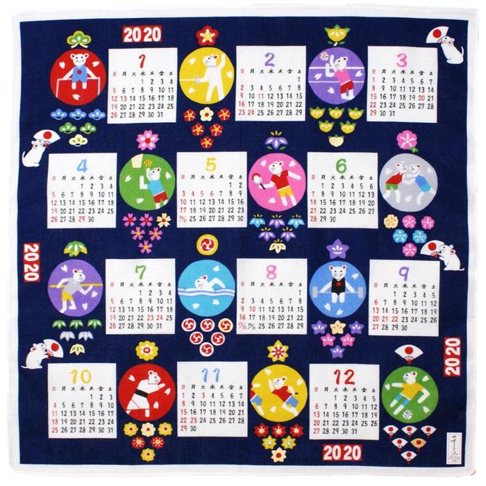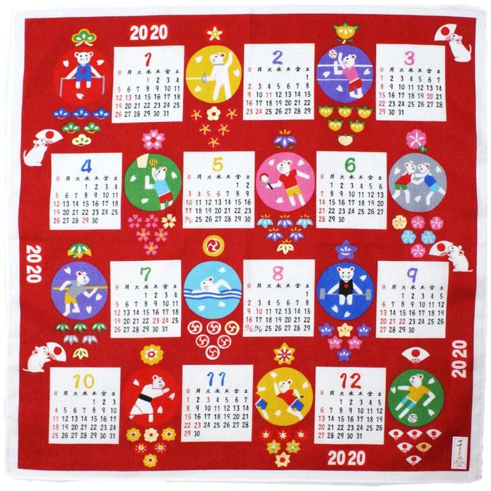 【 カレンダー 2020年 ハンカチ 】子 ねずみ ネズミ 青 赤 [ 干支 正月 お正月 年賀 タペストリー 東京 オリンピック 和風 インテリア 飾り ディスプレイ ディスプレ ー 四季 季節 冬 1月]